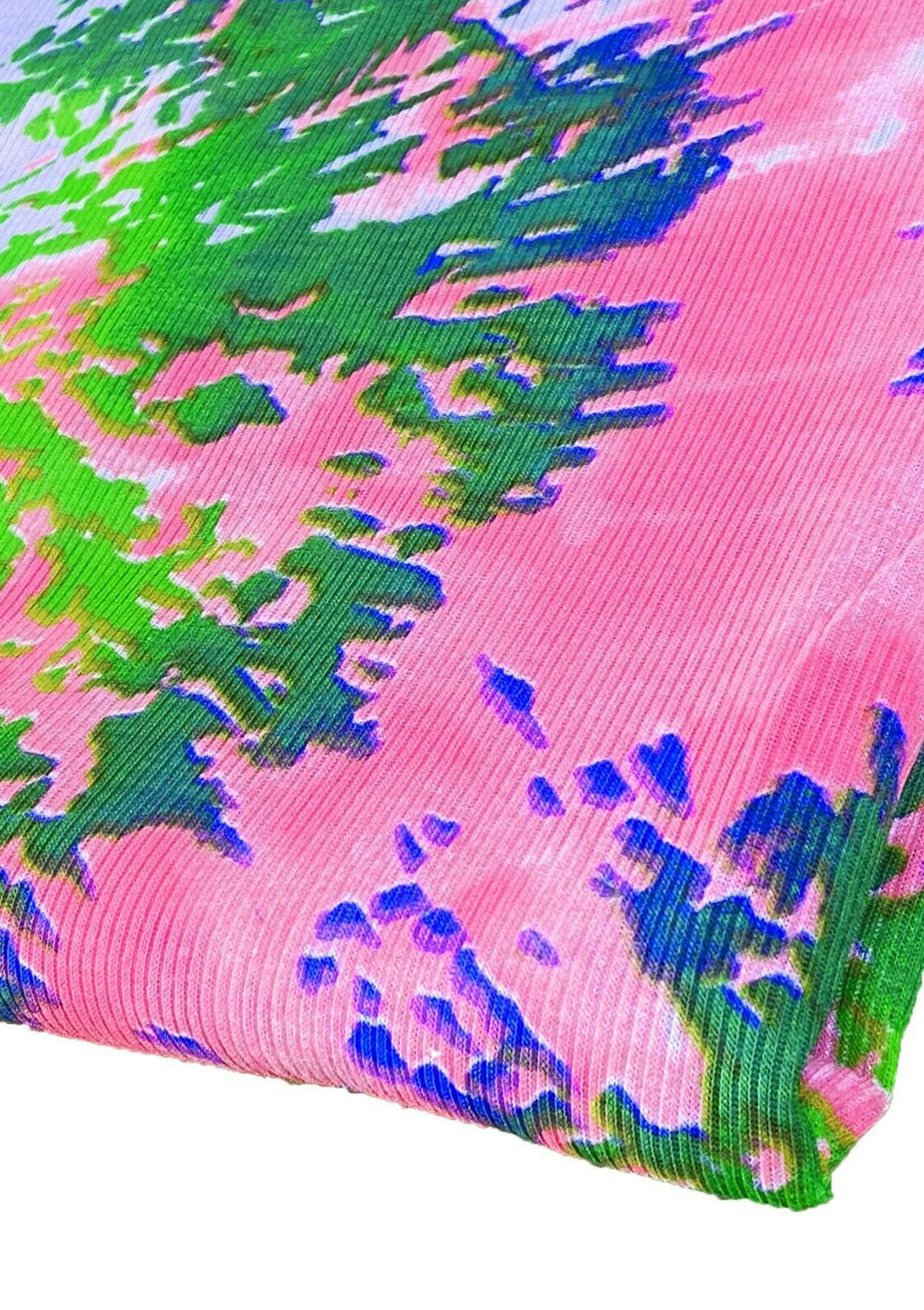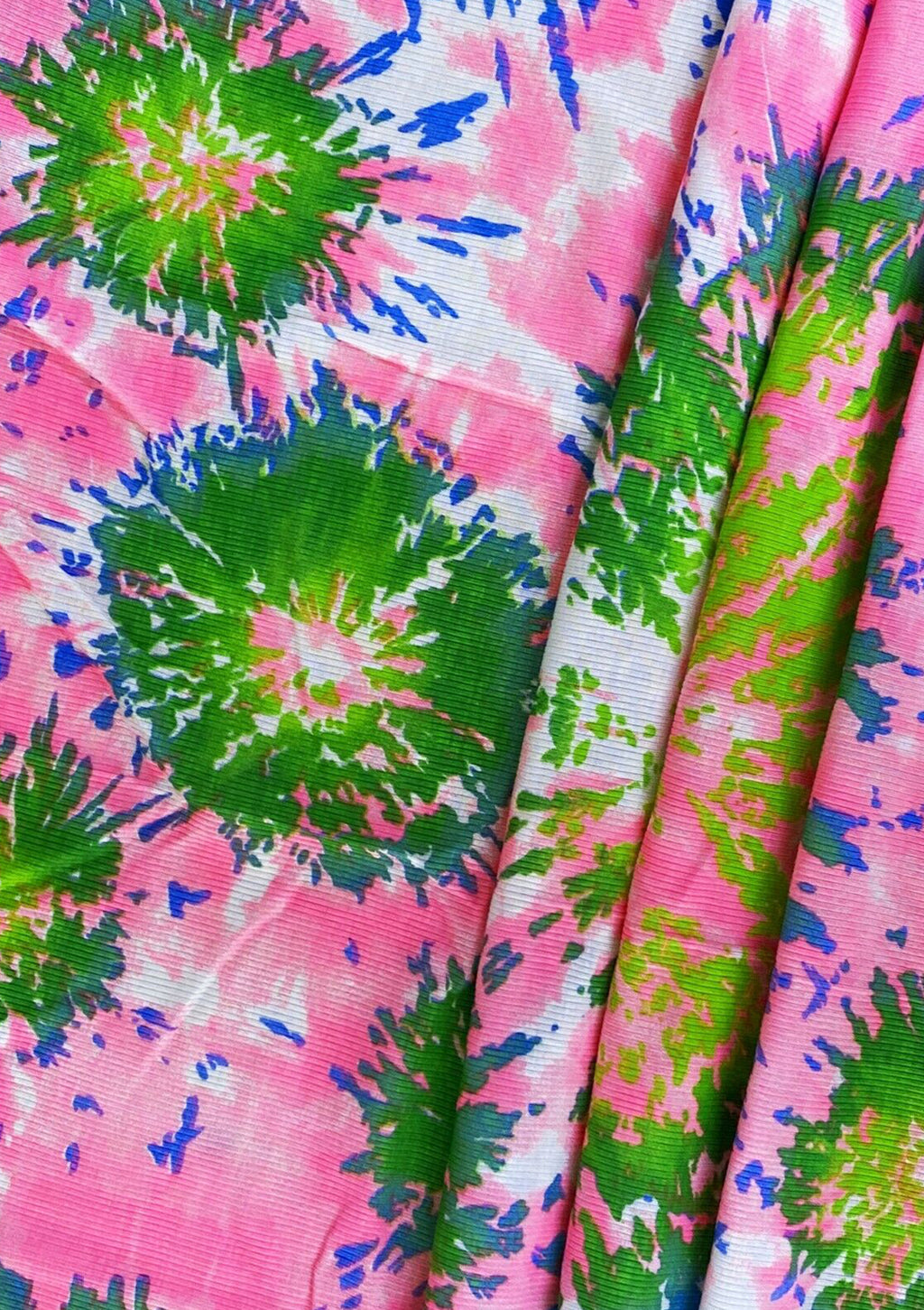Floral Jersey Fabric Tie Dye Effect Fashion Rib Crepe 2-Way Stretch 54" Width