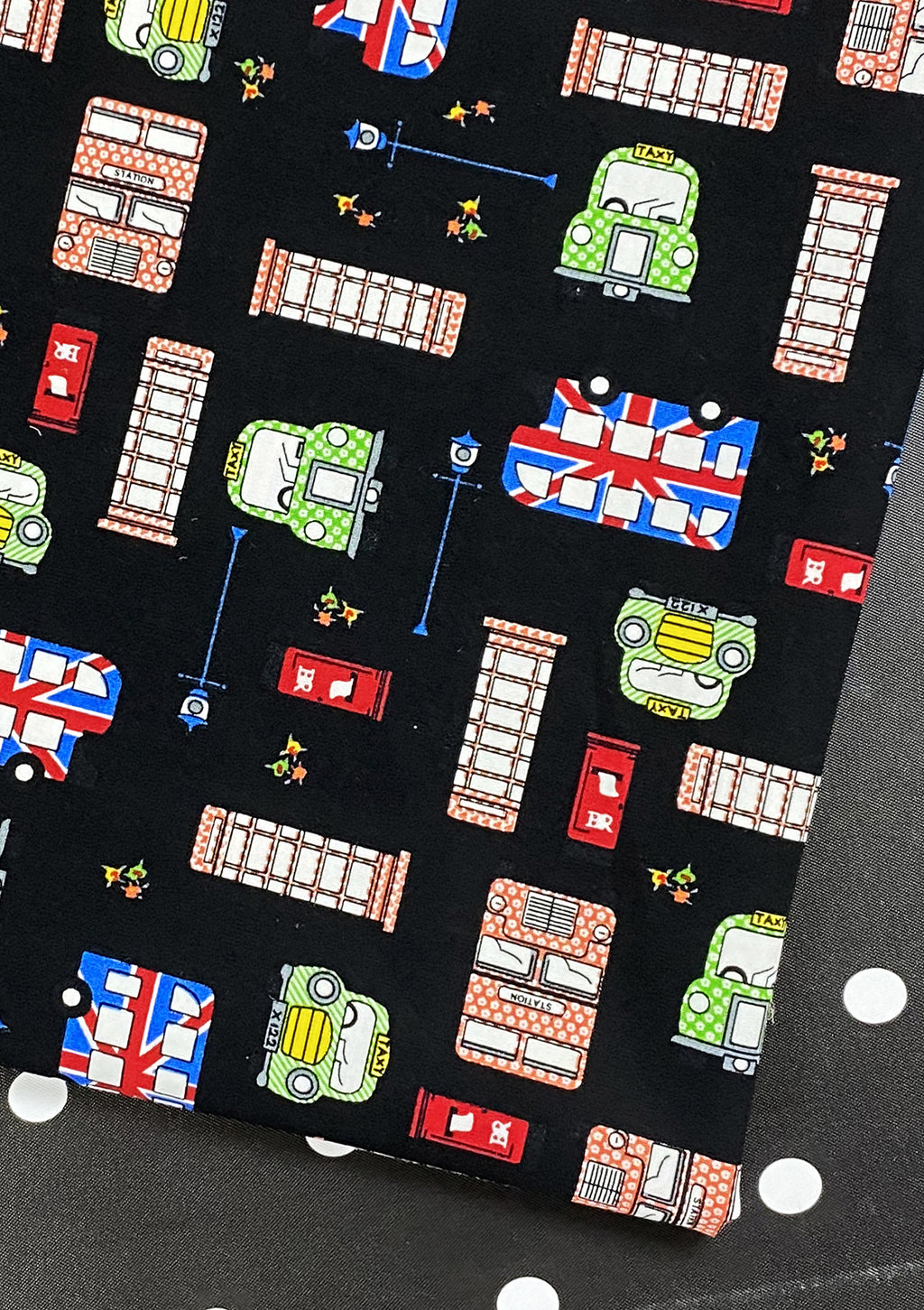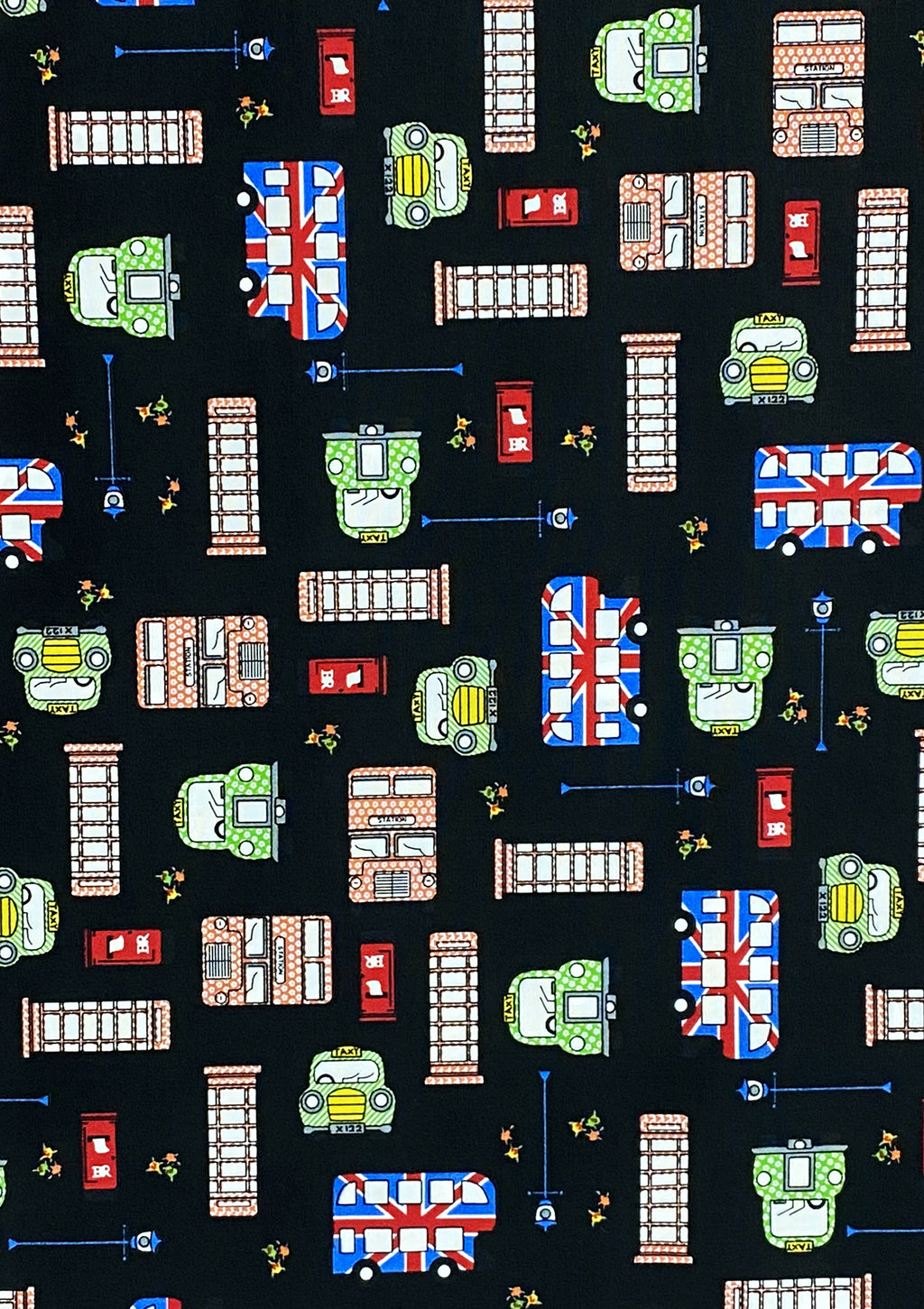 London Theme Cotton Printed Fabric 45" Wide Craft Poplin Quilting Dressing D#43 (Black)