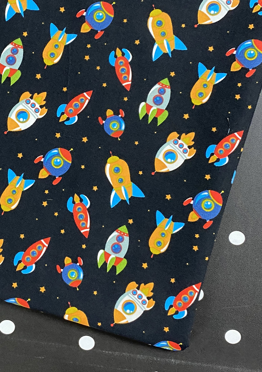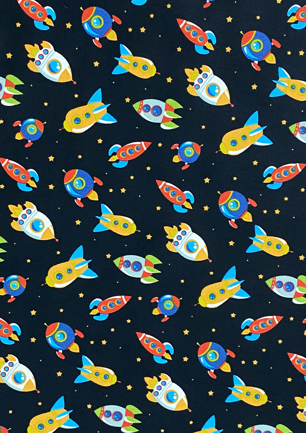 Rockets Spaceships Cotton Print Fabric Space Theme 45" Wide 100% Craft Poplin Dress Material D#141 - Black