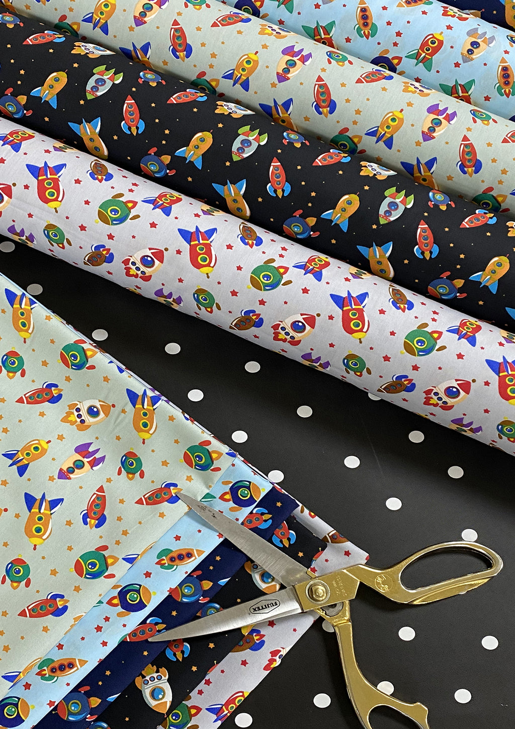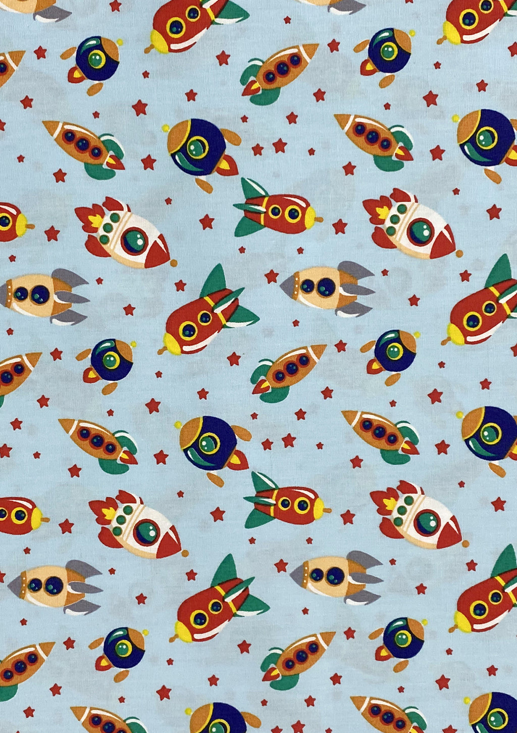 Rockets Spaceships Cotton Print Fabric Space Theme 45" Wide 100% Craft Poplin Dress Material D#141 - Sky