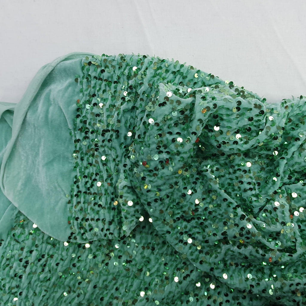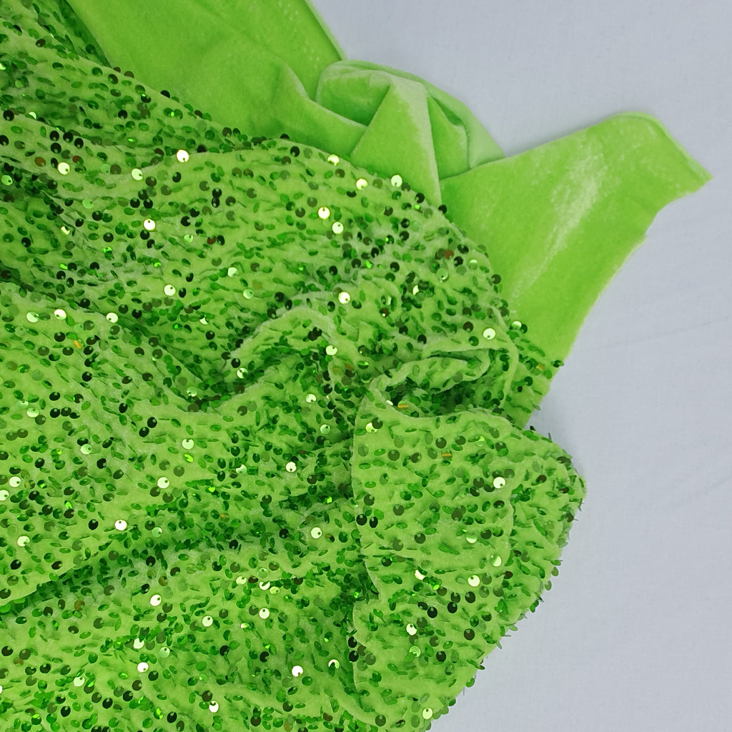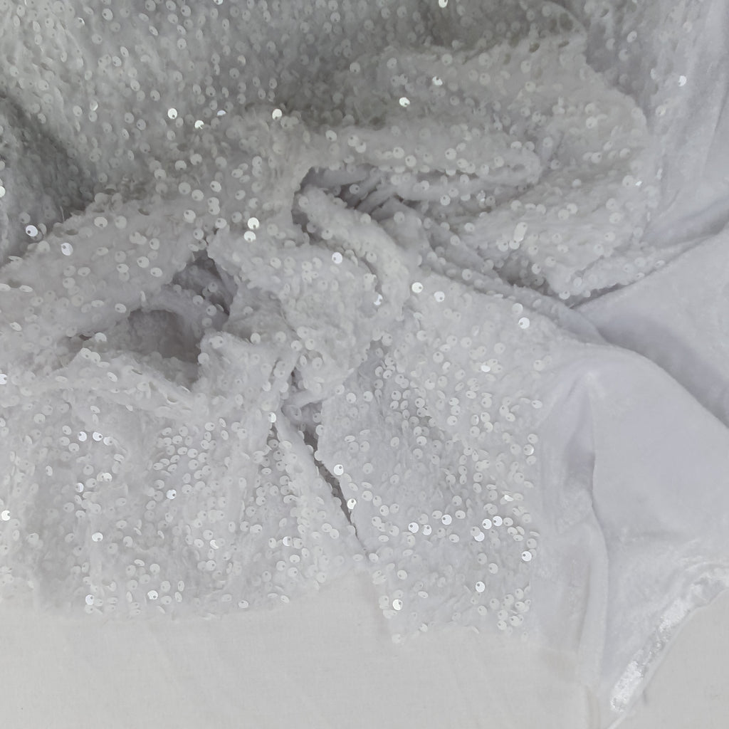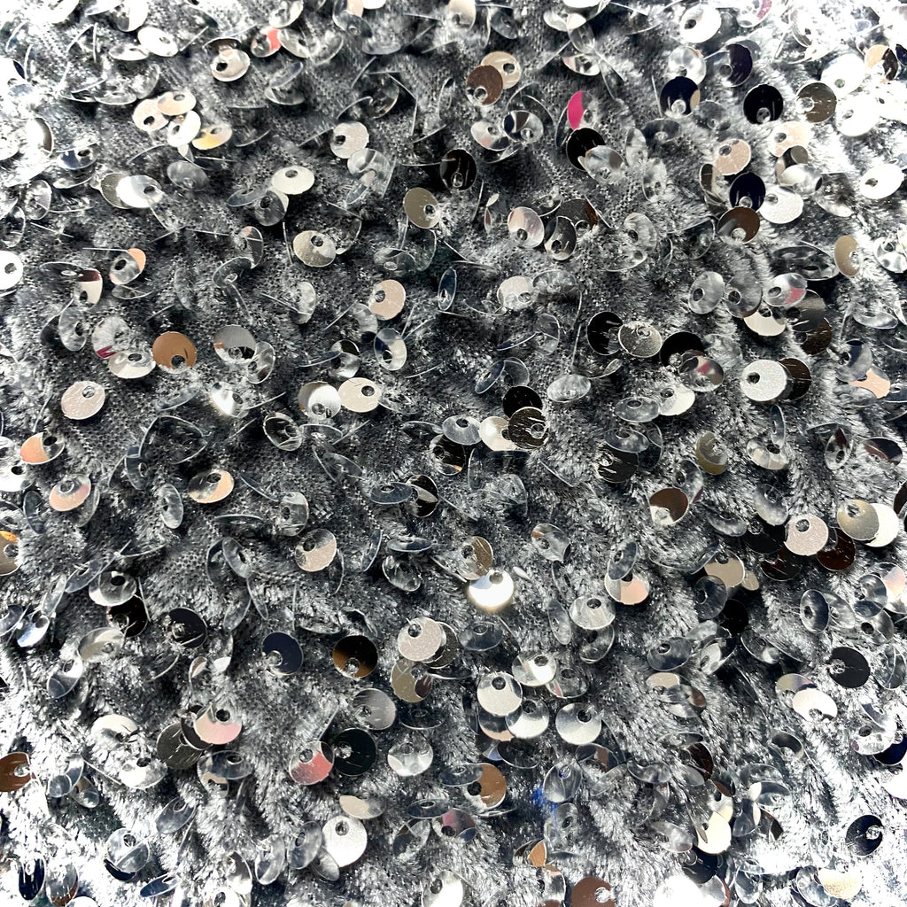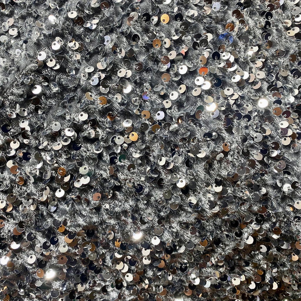 Sequin on Stretch Velvet With Luxury Sequins all Over 5mm Shining Sequin 2-way Stretch 60” Wide