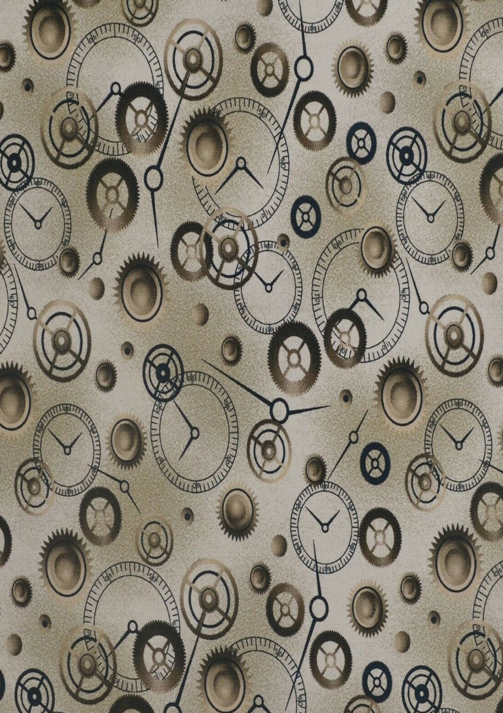 Steampunk Cogs Clock 100% 45"Craft Cotton Poplin D#39
